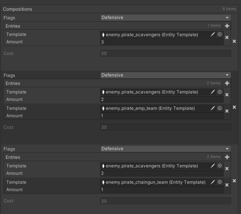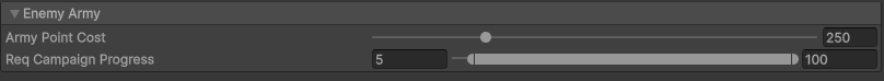 [hr][/hr]From the above, it was obvious that we needed a completely new system. Here is how it works now. [b]Enemy Units[/b] Each enemy unit now has an associated supply point cost and a min- and max-campaign progression. This allows us to make sure certain units only show up after the player progresses a bit in the game, or alternatively, that weak early game units do not show up anymore at a certain point in the game: