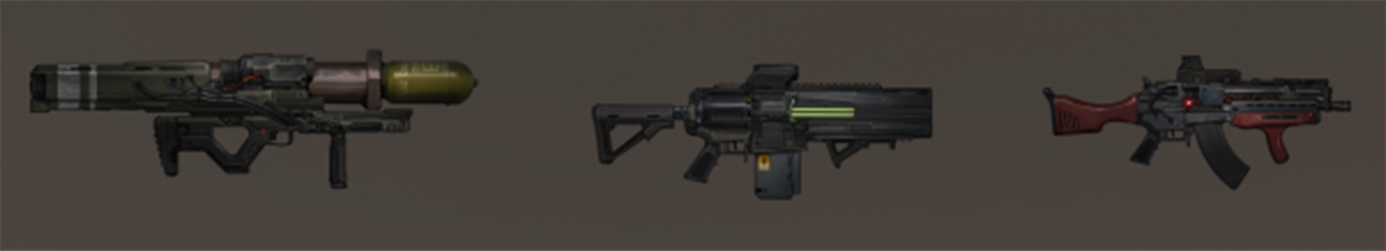 [hr][/hr]Once a project has been unlocked through a blueprint, it can be assembled in the new workshop window. Each project, or blueprint, requires a specific set of Construct loot items to be assembled. The items needed are highly dependent on the tech level and the type of item that is going to be created. Once a blueprint has been unlocked, it can be used over and over as long as the required construct items are available. We currently have 28 new items planned for the system, but we will expand it over the next year. Here are some tech level 1 and 2 items where the original base of the improved weapon is still recognisable: