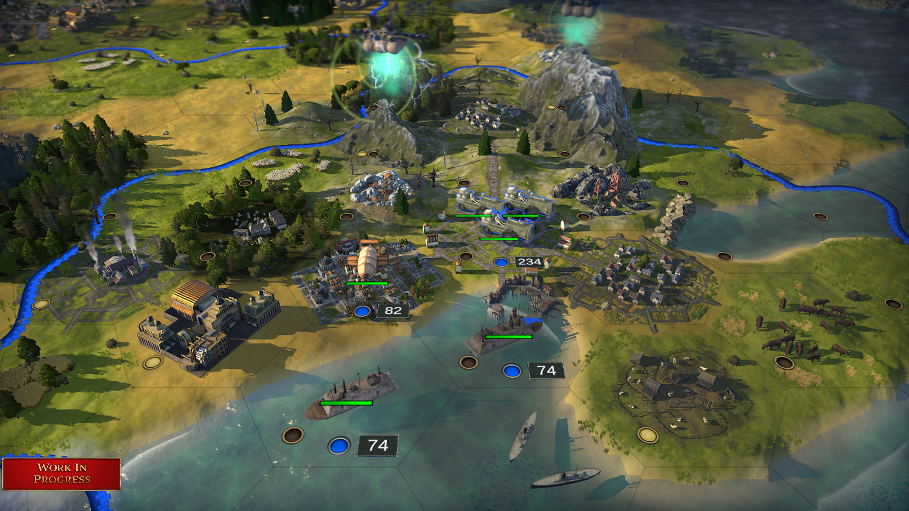 The timeline in Millennia is separated into 10 distinct Ages. Each Age houses a handful of Techs that unlock Units, Buildings, Improvements, and more. Unlocking each Age will both progress you through history and potentially expose you to these “what-if” alternate history timelines. The historical Ages have Technologies you’ll recognize, and the alternative history Ages have new Techs unique to that Age. The “What if steam power was viable?” Age has floating airships, steampunk machines, and more, just to give you a taste!