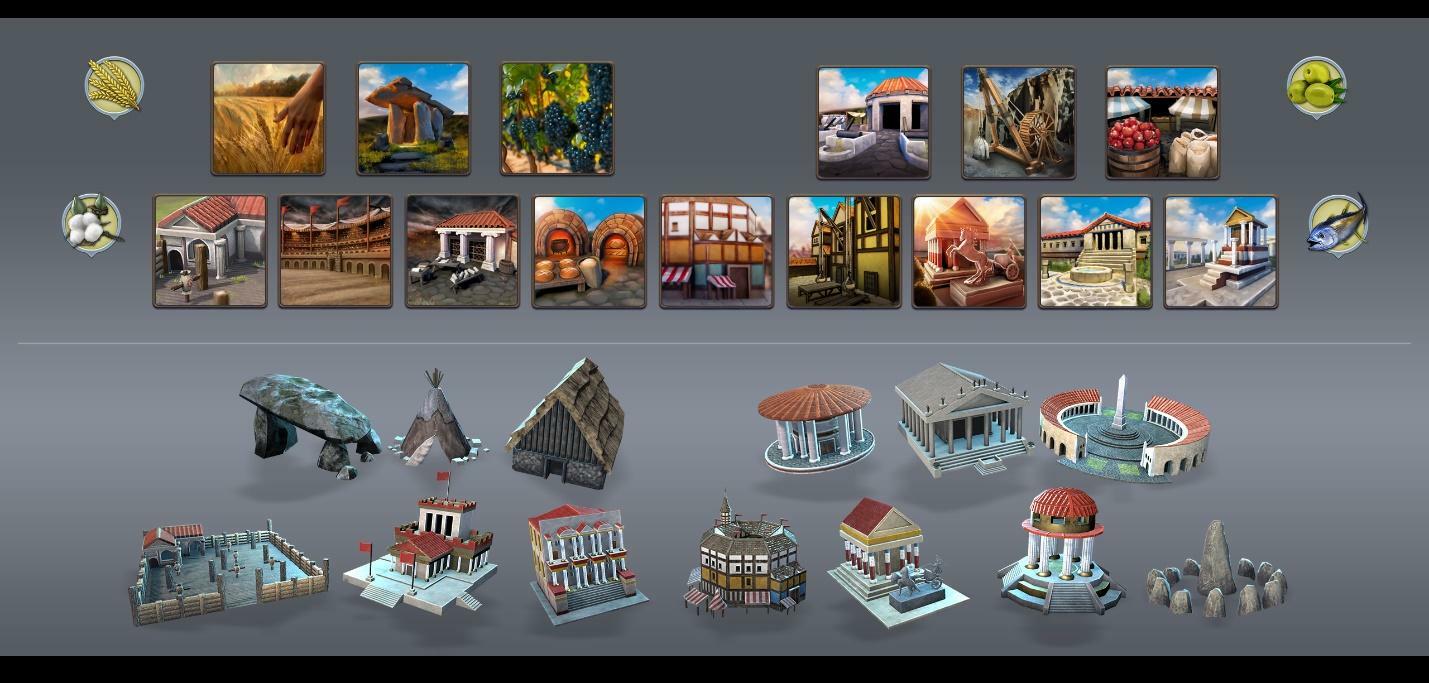 Nations are largely shaped by the structures and resources within them. Whether they support defenses, the production of goods, trade management, or something else… There are hundreds of unique buildings, resources, and types of improvements unlocked throughout Millennia. Many buildings change appearance over time as ages progress, while others can be updated by choice if a new age offers an upgrade. Similarly, some resources become newly available as time goes on. Like the games’ units, buildings and other resources are represented by a variety of 3d models, portraits, and icons.