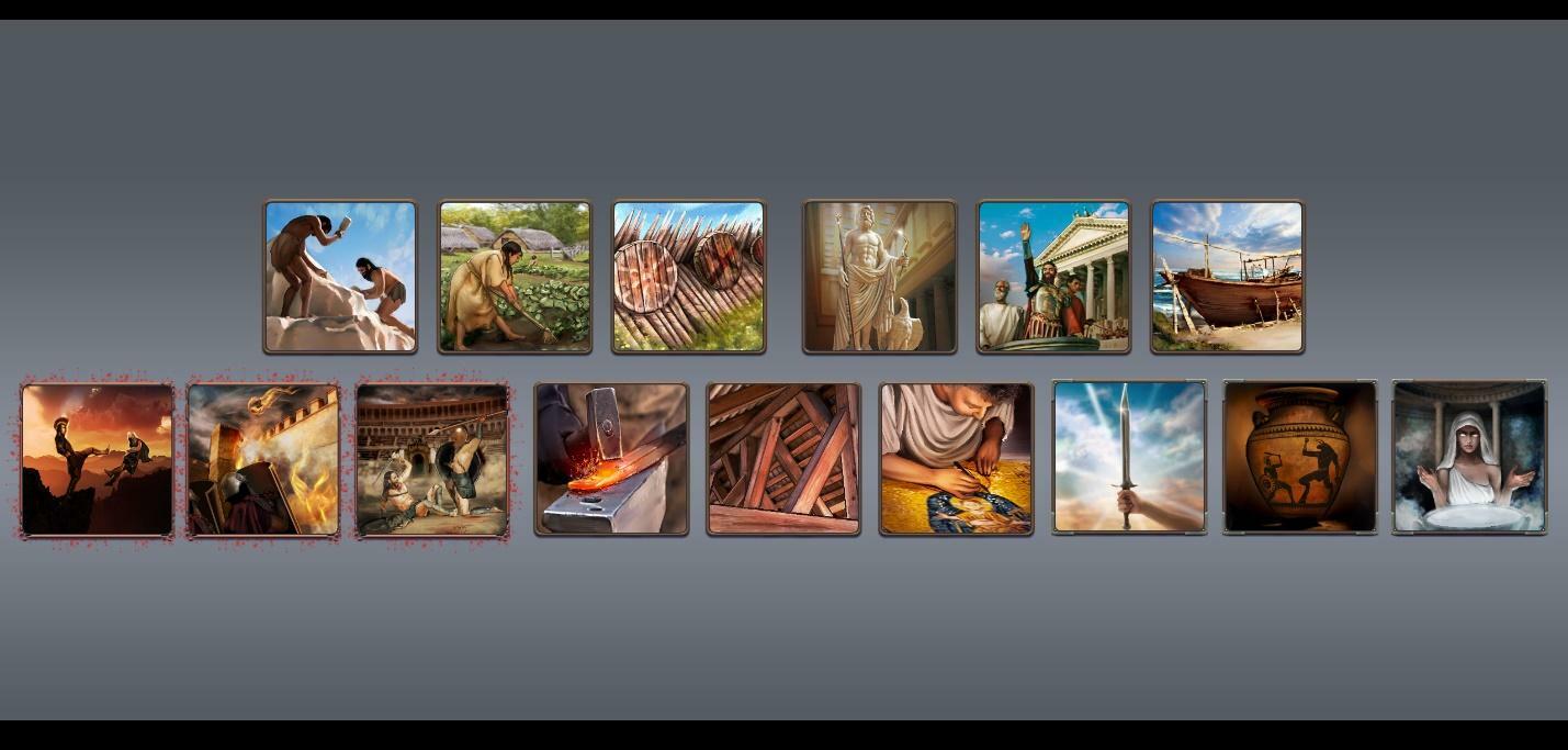 Unlocking technologies available within each age is a way of accessing unique features and units. There are several different techs per age, each pulling from ideas of what technology would be available during an age that may contribute to shaping a nation. We represent each Technology with a painting to give a visual feel for what to expect from it.