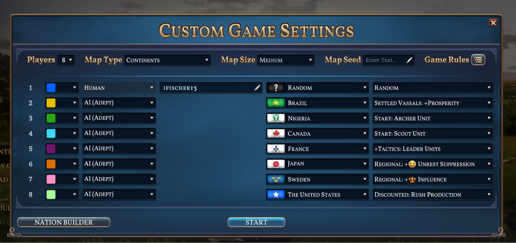 - All custom Nations were selecting the Revolutionary personality; these now select a random personality at game start.