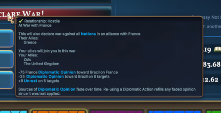 - Expanded Diplomacy tooltips to show what will happen when going to war when Alliances are involved.