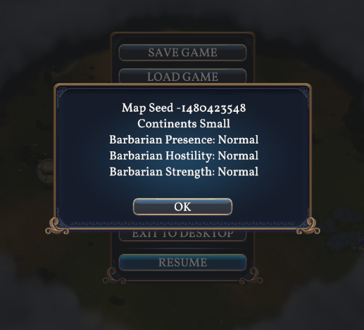 - Instead of showing game information (like map seed) in the ESC menu, there is now a Game Information button that opens a panel with game information, including the new game rules.