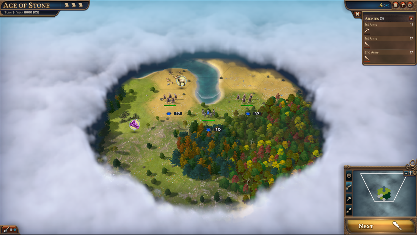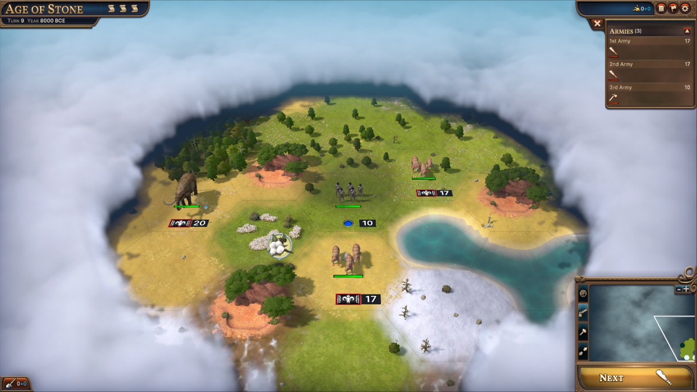 Megafauna stalk the land, threatening your prehistoric nomads. The Mastodon Unit and Smilodon Unit are straight out of the Pleistocene. We’ve made the Megafauna more dangerous than Barbarians starting out, but they won’t repopulate their dens on the map, nor will they grow in strength over time like the Barbarians do. We’ve designed them to follow the normal path of history by being threats to early humans, but eventually die off as you master the tools needed to fight back.