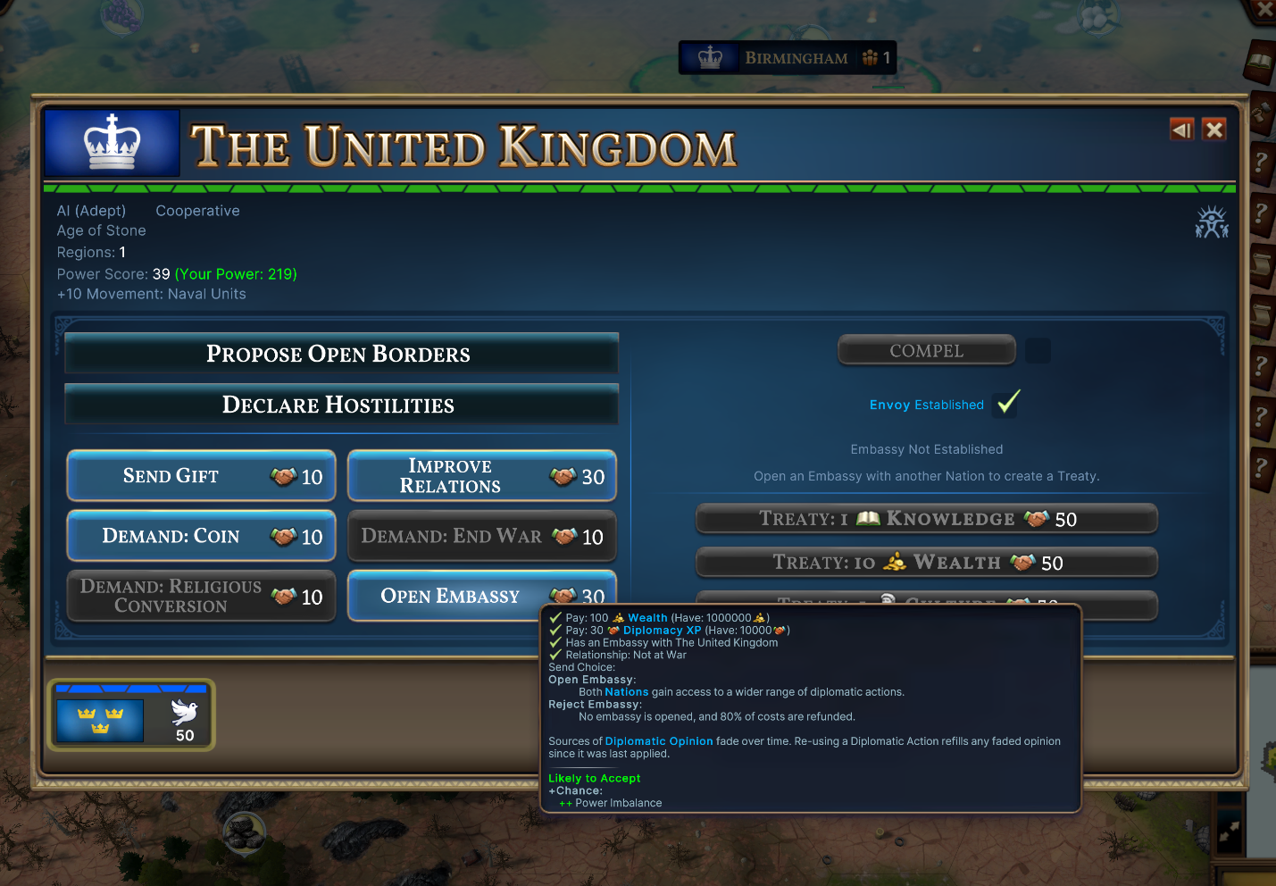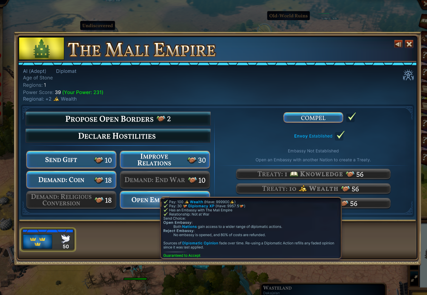 We have also added an option to Compel the AI to agree to your requests at the cost of additional Diplomacy XP.