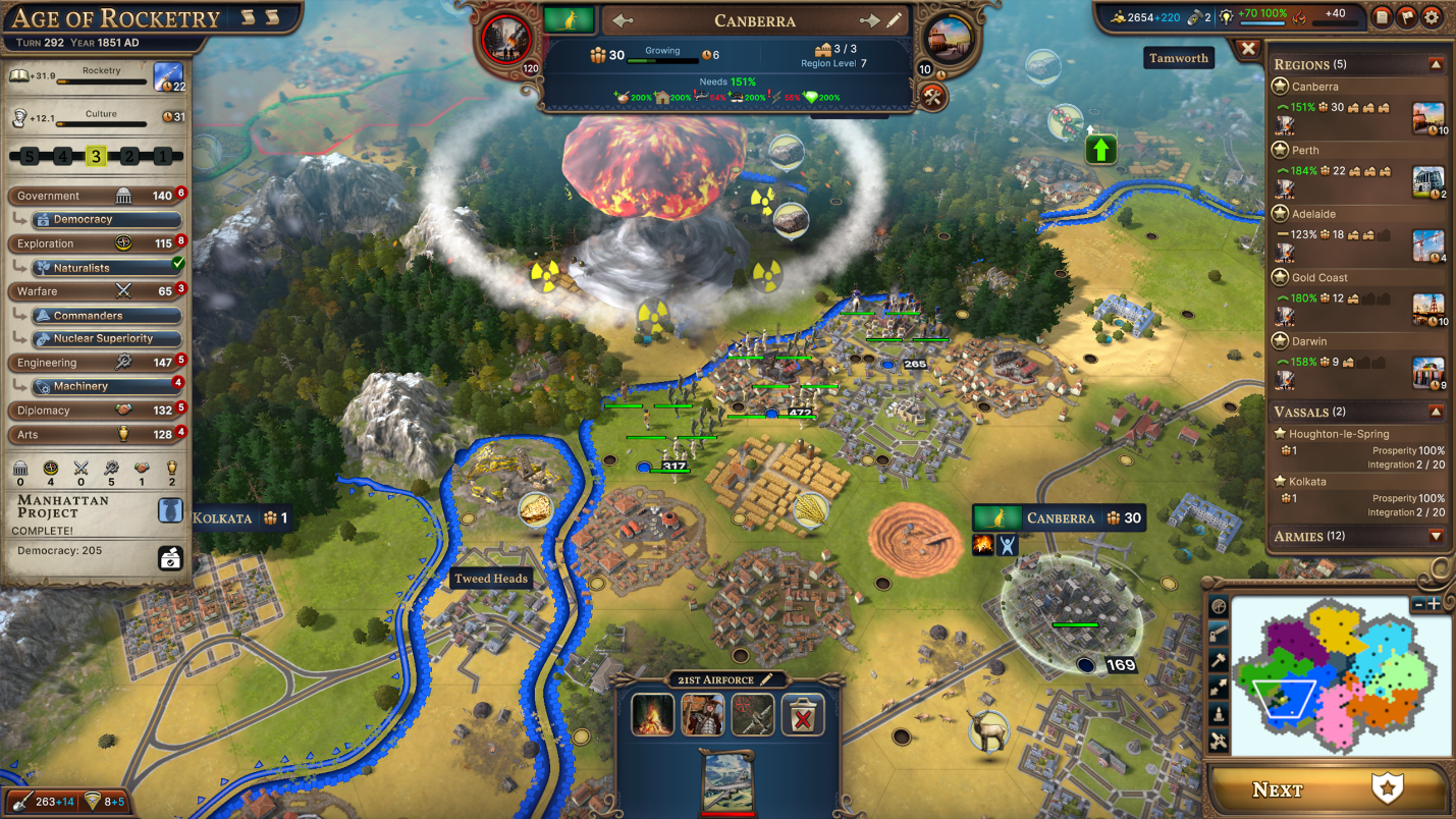 The reason we made this third National Spirit is because the Siege mechanics in Millennia are getting an update to support the new nuclear weapons. The Siege Masters are intentionally available early in the game so that you can have an in-depth experience with what we’re calling the Strategic Warfare update.