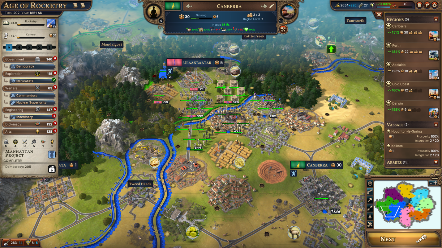 You can select your Starting Age for new games and pick up at the start of Age 1, 4, 6, or 8 (the Ages that unlock National Spirit slots, aside from Age 2 which we felt was close enough to Age 1 that players would prefer to start in Age 1 anyways), and you’ll begin with a procedurally generated world state fitting for that Age.