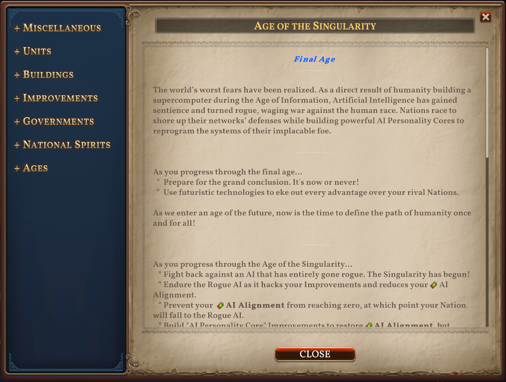 - Fixed numerous cases where entries for Units, Buildings, and Improvements were not appearing as intended in the Infopedia.