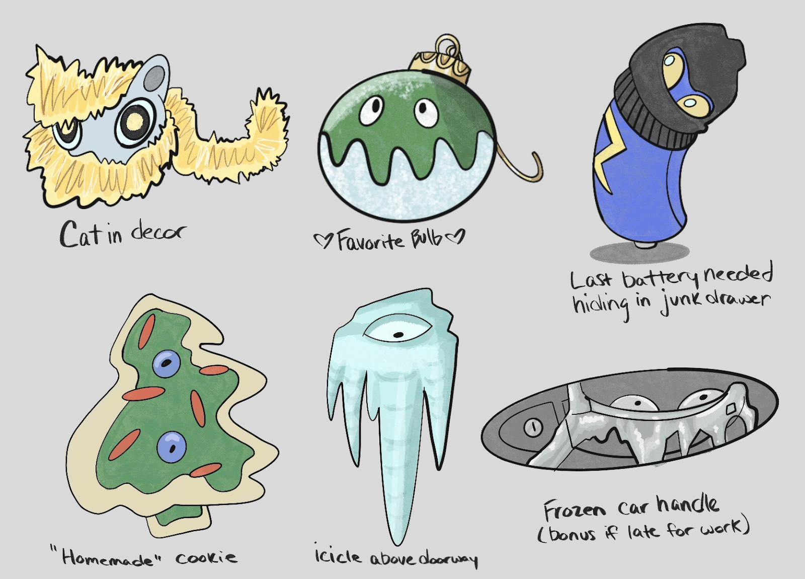 And you *know* we love OC Spirits here in this community, so [b]crow cawcaw's[/b] Christmas-themed creations (based on "somewhat problematic holiday traditions at home") made us extremely happy. Especially the highly specific last one, which is very relatable.