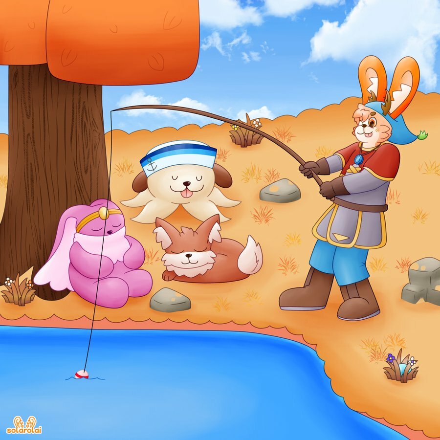And from Solarolai on Twitter, this adorably peaceful Fall scene. Look at sleepy Beardini!! And is anyone gonna tell them about the Moonstone right at their feet...?