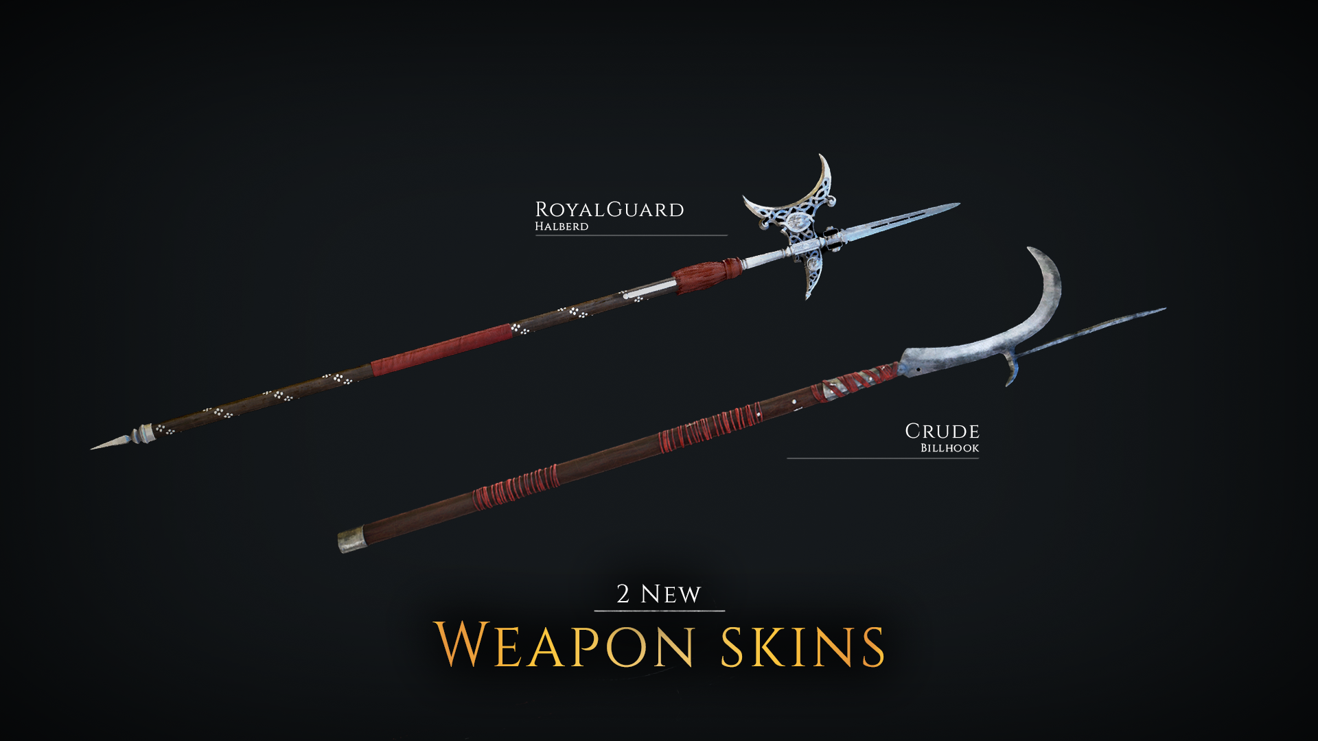 New skins for the RoyalGuard halberd and the Crude bill with a more refined and royal look to them.