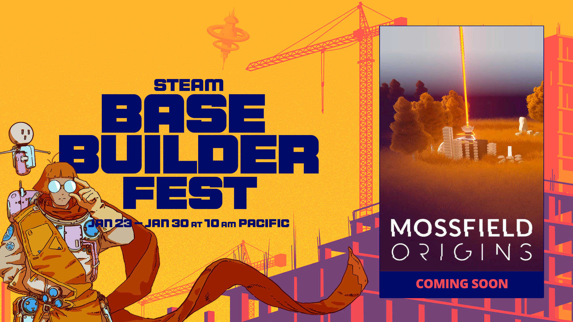 Mossfield Origins will also be a part of the Steam Base Builder Fest next week! The event runs January 23 at 10:00 AM PST (UTC-8) to January 30 at 10:00 AM PST (UTC-8) on Steam, so be sure to drop by. [url=https://store.steampowered.com/app/1836400/Mossfield_Origins/]