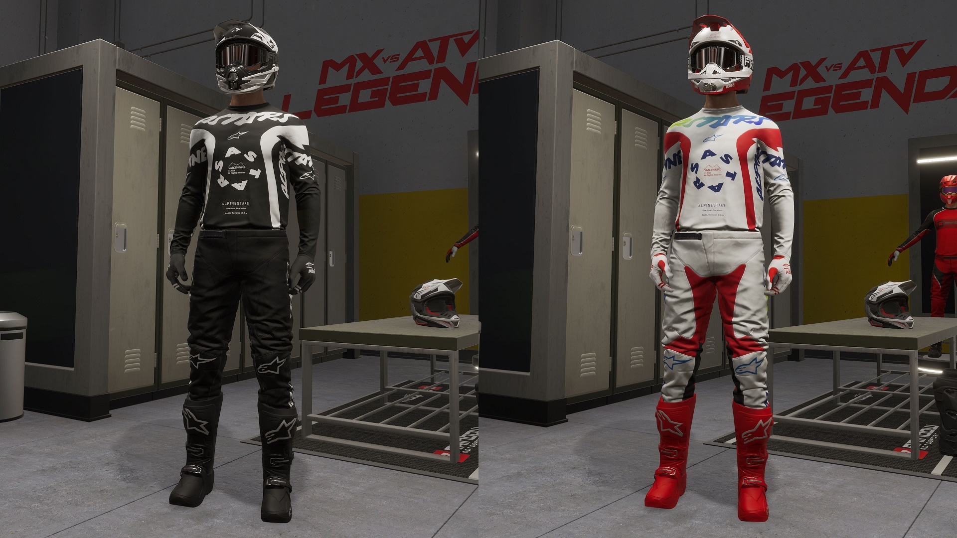 - Alpinestars Racer Hana jersey and pants are now available in the locker! This gear comes in black, multicolor, and custom color.