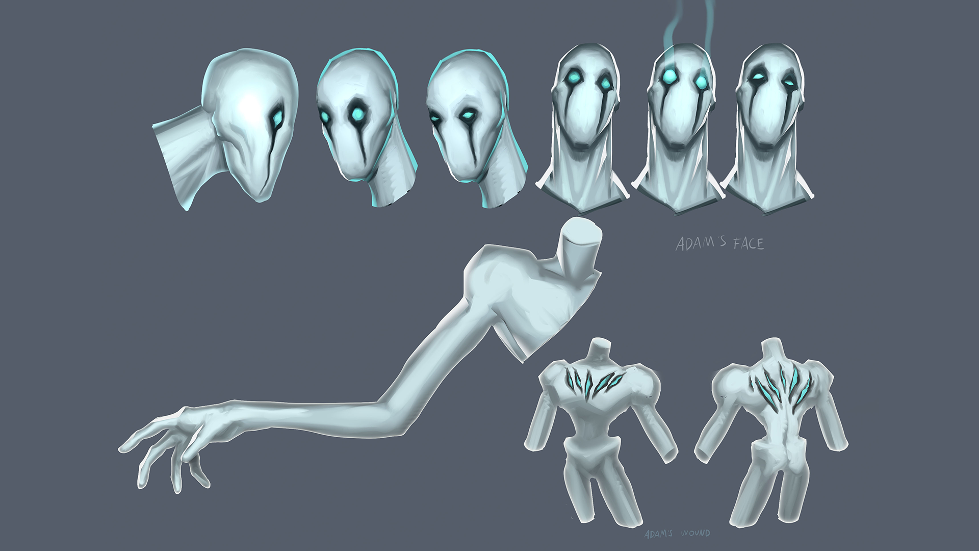 "It was challenging creating something that lacks expression but still shows emotion. When you see Adam, you also notice the same shapes on the 'shadelings' that he controls. It's intentional to not only assimilate others into himself but also to convey his pain and suffering, making him, in my opinion, an inevitable plague." Desar said.
