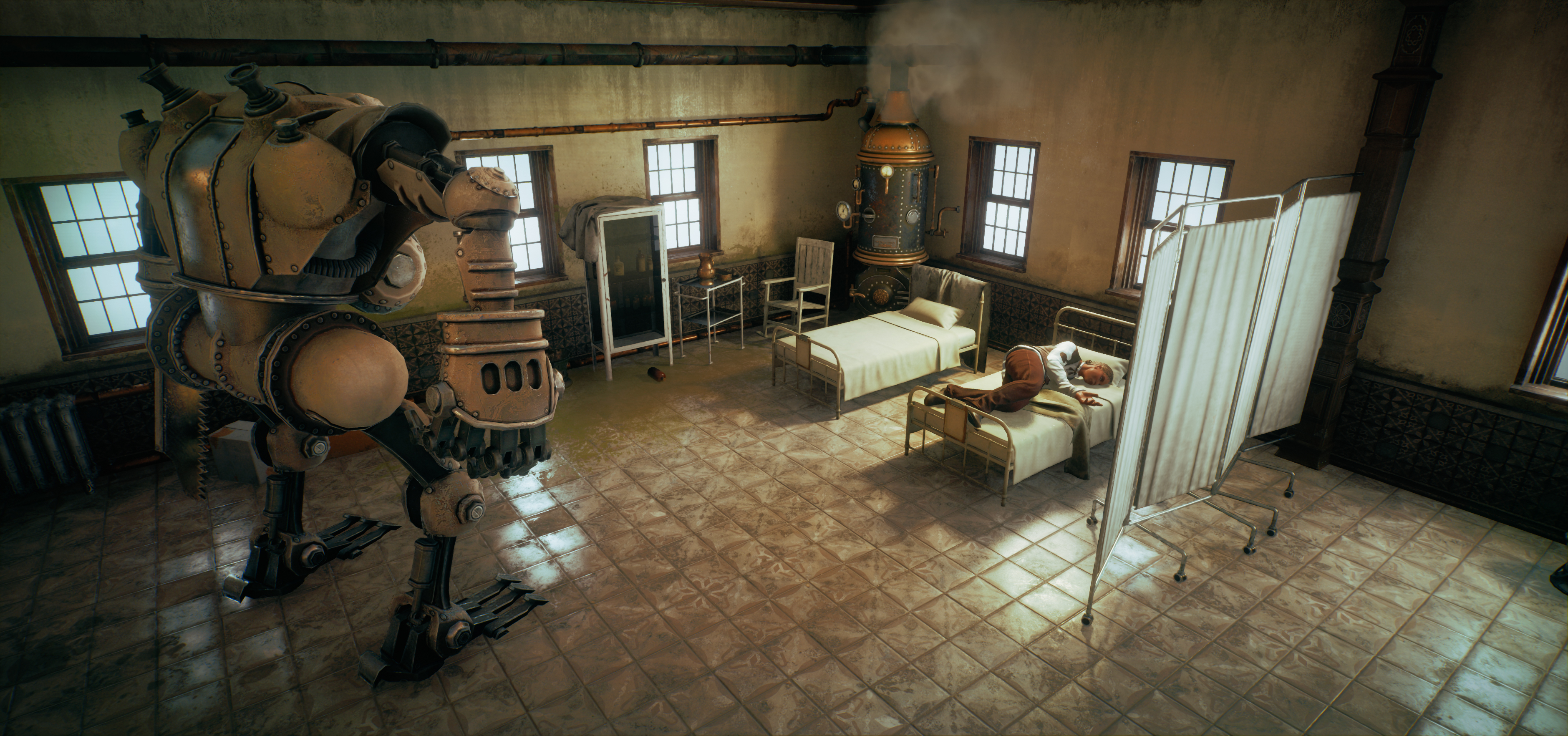 There is one remedy that can at least slow down the progress of the disease, but it is extremely rare and expensive, only the rich can hope to obtain it – dragon blood. It is a cruel and deeply ironic twist of fate that a magical substance is the only hope for life that a wealthy technologist has. For those who can't afford such luxuries, the government pretends to control the epidemic. It even tells panicked citizens that they are being treated – all lies, of course. In the game, hospitals have separate blocks for plague patients, and there's even a fully separated Leprosarium. In these institutions, automatons are used to… Provide care to patients.