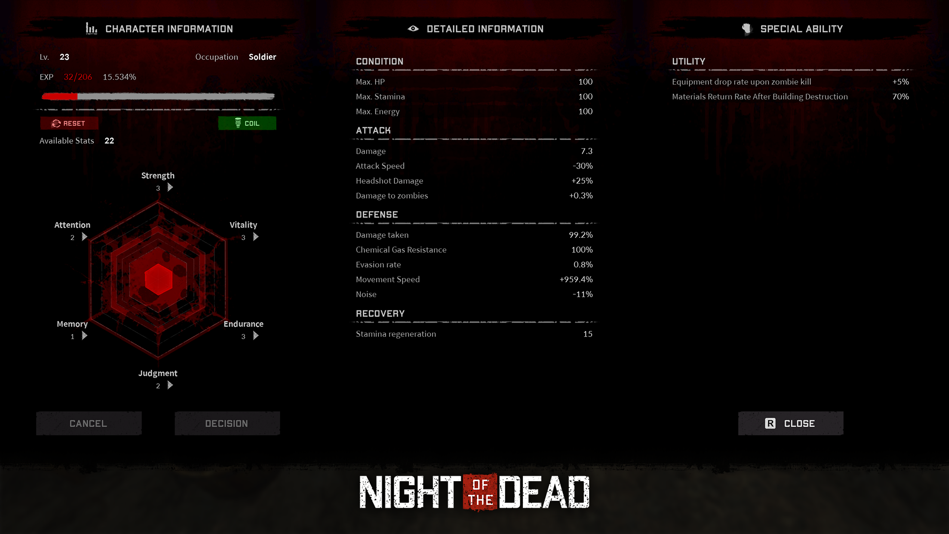 [b]Equipment Balancing[/b] - The overall equipment options have been balanced. - Existing equipment not have the adjusted options applied. [b]Item Balancing[/b] - The stack limit for certain items in the Storage Box and Drone Station has been increased. (Leaf, Research Data, Crude Oil, Fuel) - The required materials for crafting Bone Armor have been changed. - The materials obtained from disassembling certain equipment have been changed. [b]Zombie Balancing[/b] - The spawning areas of certain zombies have been changed. - The stats of zombies in each area have been increased. As a result, the difficulty of waves has increased. [b]Building Balancing[/b] - Changes have been made to prevent fire from catching on certain furniture buildings.[b][Items][/b]
