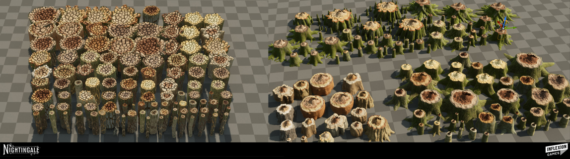 Tech art is wholly unique to gaming as it blends interactivity with artistic vision. With the range of assets on display here, it goes to show how additional immersion is added to our tree-cutting system - the finished look making the simple act of chopping them down all the more satisfying.Euan McKay - Tech Art