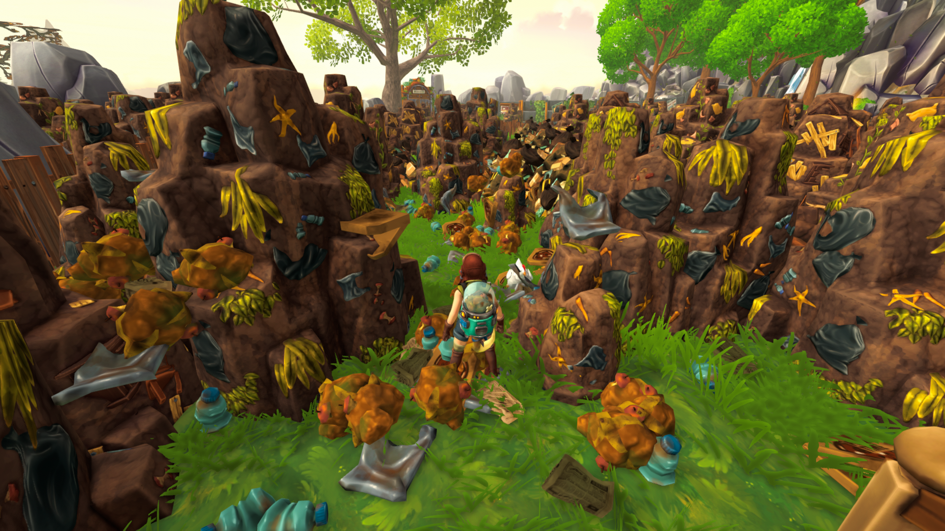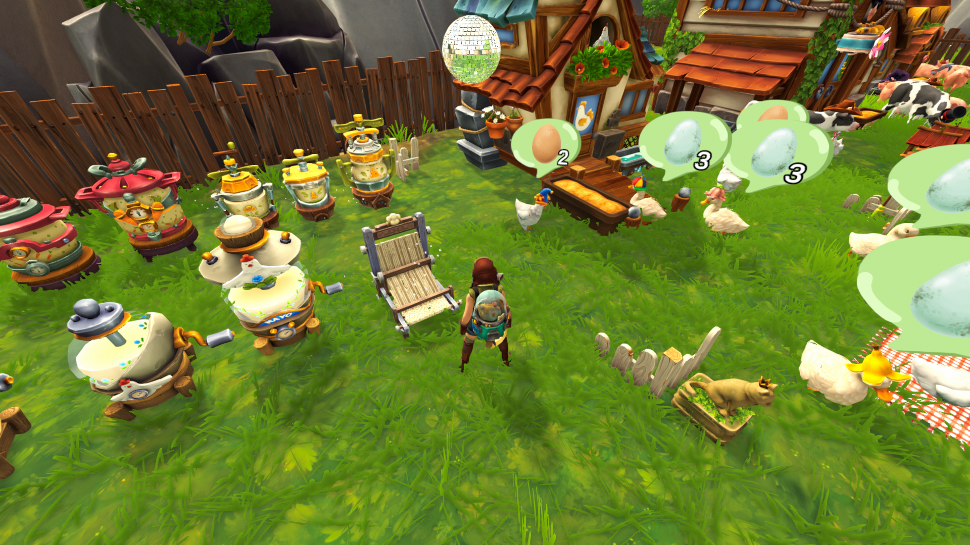 Whole story and quests have been completely rewritten and updated. We still need to introduce a new animated intro and story recap for full release but to give you glims of what is waiting for you please check out our teaser below: You play as Ellen, a girl who is ready to move from a temporary space station to Mars after humanity trash the Earth and decided to abandon it. Just before the move she decides to make a final trip to her grandpa who stayed on earth and enjoy last holidays on his farm. However when she finally gets to her destination it turns out that her grandpa and all animals have mysteriously vanished and whole farm is completely trashed and overrun by strange malicious robots. She has to keep on cleaning trash and moving forward through world to find whole squad (all farm animals and her grandpa) and solve the mystery of their disappearance. All the clues lead to enigmatic sunken city that stretches out of the sea on horizon but she has no idea how to get there. Her first encounter is Cornelius, a one of a kind talking chicken who sends her on her quest to save all chickens and take a good care of them. She has to build them a house, grow food, give them funky outfits and make an awesome chicken disco party to make all their worries go away.