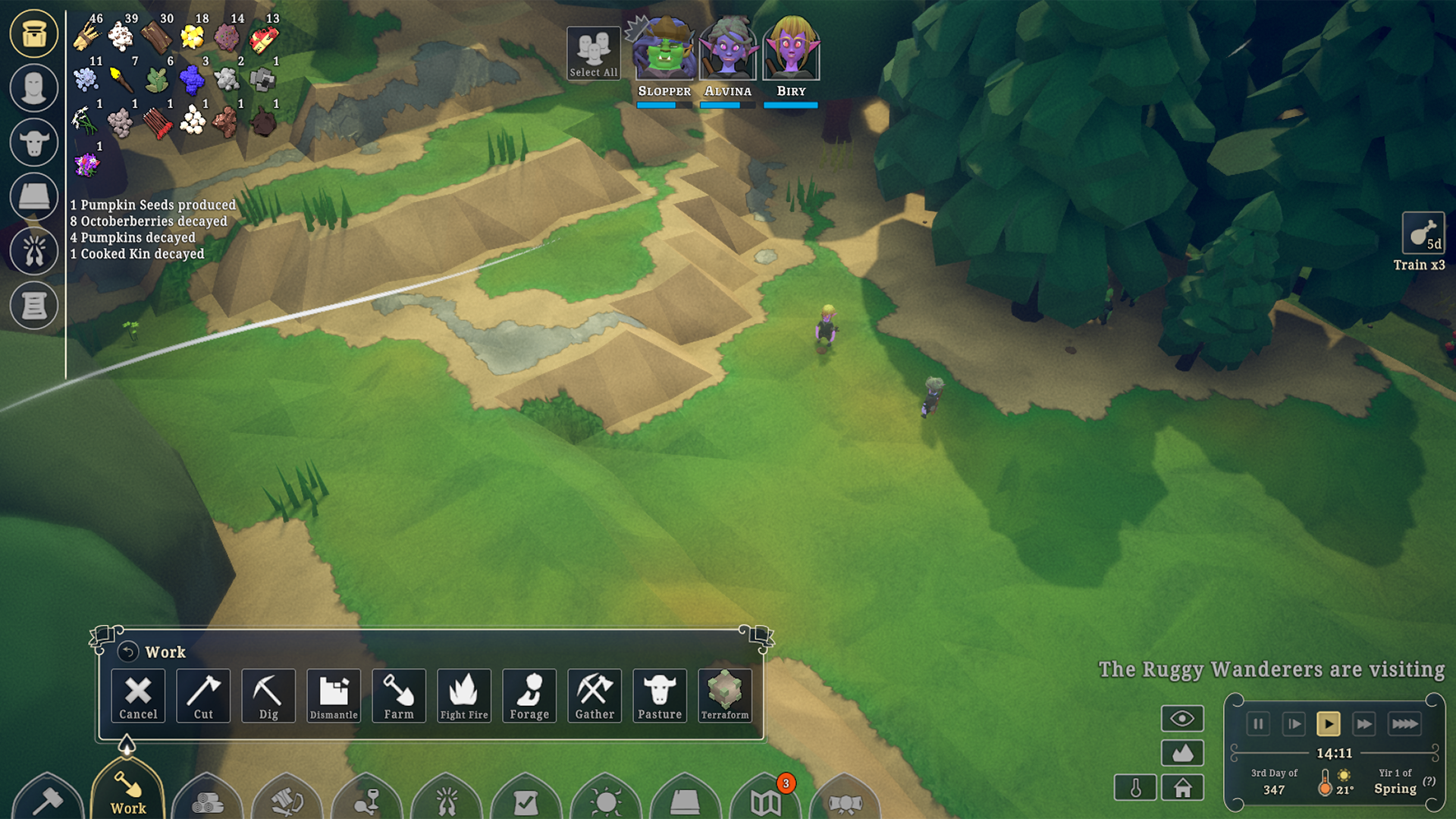 Use this to Cut Trees, Grass, Bushes, whatever. [i]Hint: Use Sustainable Trees option to select a subset of the Mature Trees, leaving room for others to fill in the gaps[/i] [i]Hint x2: Sustainable is also great for 'caps![/i]Dismantle