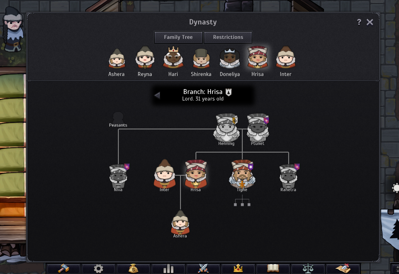 The new dynasty interface will allow you to understand family relationships. It includes not only legitimate children but also bastards, as well as the family trees of your neighbors (if you’ve intermarried with them).