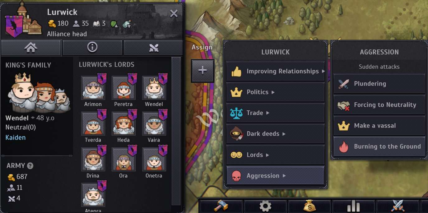 [hr][/hr]You, your lords, the bishop, and your neighbors can now create puppets from other lords (including your own). A puppet is bound to its master's will and can do their dirty work—such as shady dealings, intrigues, kidnappings, and even rebellions.Local Map Intrigue