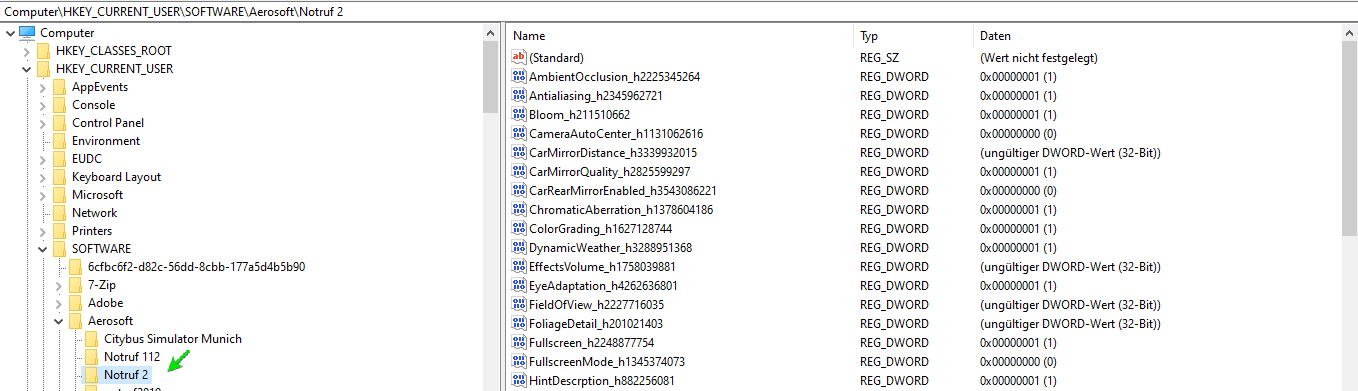 Computer\HKEY_CURRENT_USER\SOFTWARE\Aerosoft\Notruf 2