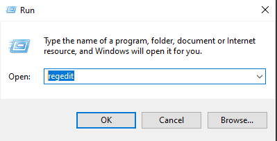 2. type "regedit" in the open box and click "OK".