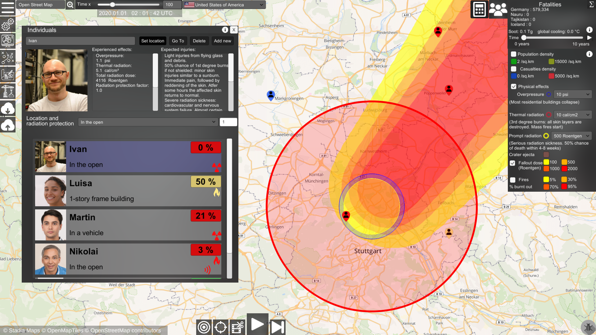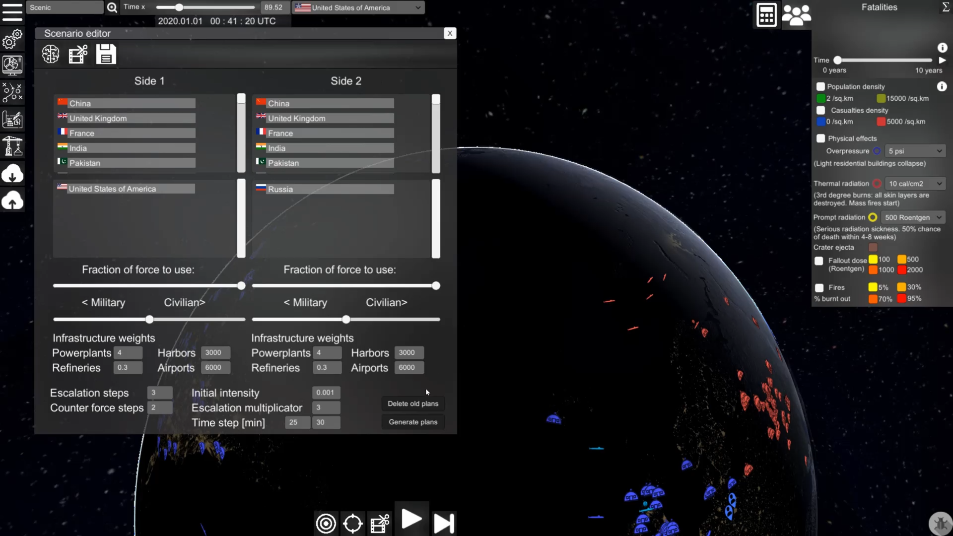 Objects of civilian infrastructure are now also targeted automatically. The targeting priority of infrastructure types can be adjusted individually. Adjusting the priority of different target types and conflict timing can be used to create a new distribution of warheads every time you run the simulation.