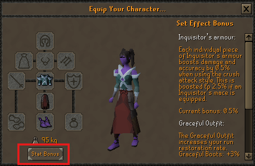 Ever worn a piece of Inquisitor’s armour and wondered if that tiny 0.5% damage and accuracy boost was really doing anything? Or if your Graceful boots were actually helping with run energy? We’ve fixed that. The Set Effects menu now shows the bonuses from each individual piece of an outfit, as well as the full set bonus if you’ve got the whole thing equipped. Whether you’re rocking partial Inquisitor’s, Graceful, or one of the many skilling or combat outfits with tiered bonuses, you can now see exactly what each piece is contributing.