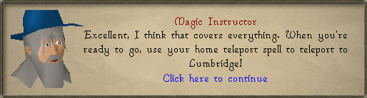 To wrap things up, the Wizard at the end of Tutorial Island has learned a new trick, or rather, he’s teaching you one! Players are guided to open the spellbook and cast Home Teleport directly. The spell’s cooldown is temporarily reset for the tutorial, so you can teleport right away and stride into Lumbridge like a true adventurer.