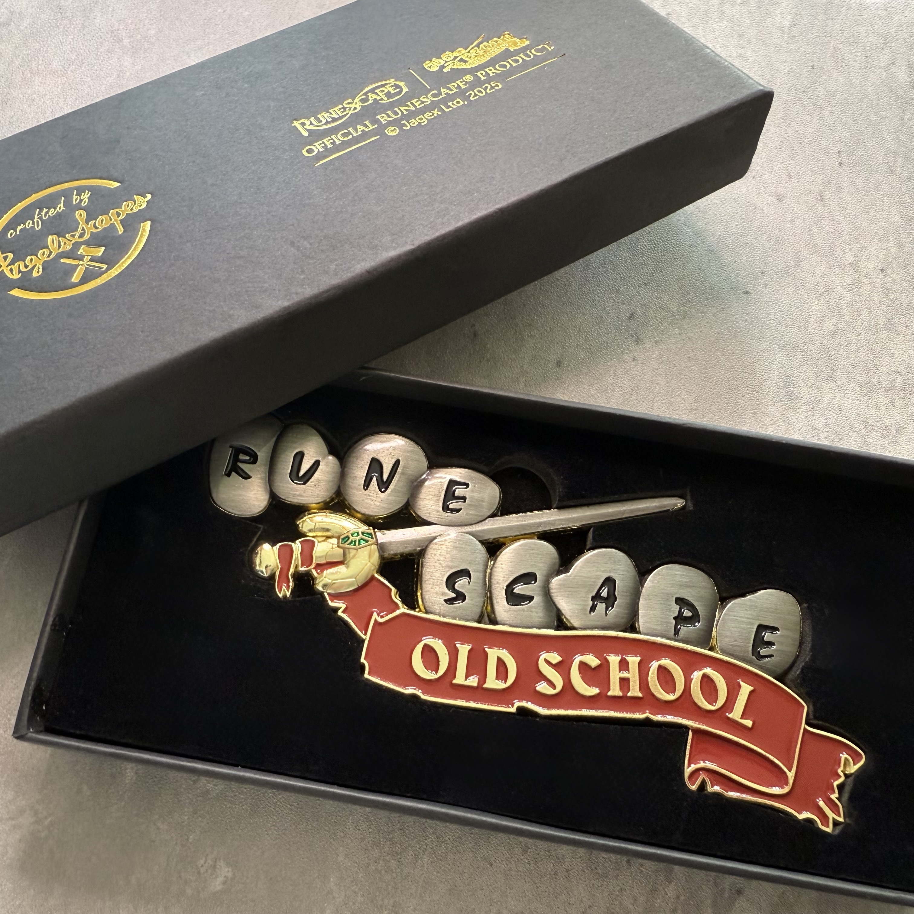 New OSRS logo pins from Angels Scapes – these have been much requested so now you can grab not one but 2 pins to celebrate your favourite game! There is a smaller version you can wear and a supersized version that is double the size and comes with a matt black and gold foil presentation box. Perfect for gifting (maybe add it to your Xmas list now!)