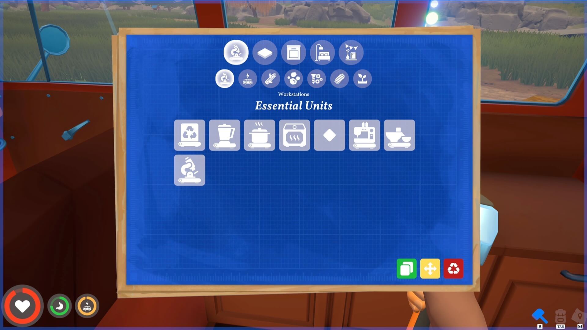 Outbound already offers a wide variety of materials that can be found and put into your vehicle. The vehicle functions as a handy shared inventory that all players can access (no need to build chests!). You can also transfer materials directly from the vehicle to any workstation to process them.