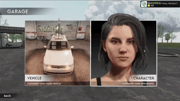 Personalizing the look of your chase car and character is central to the gameplay experience. This month we worked to design and integrate a fully functional User Interface to handle all the customisation options there are in the game. Here is a look at that interface working fully with our game systems: