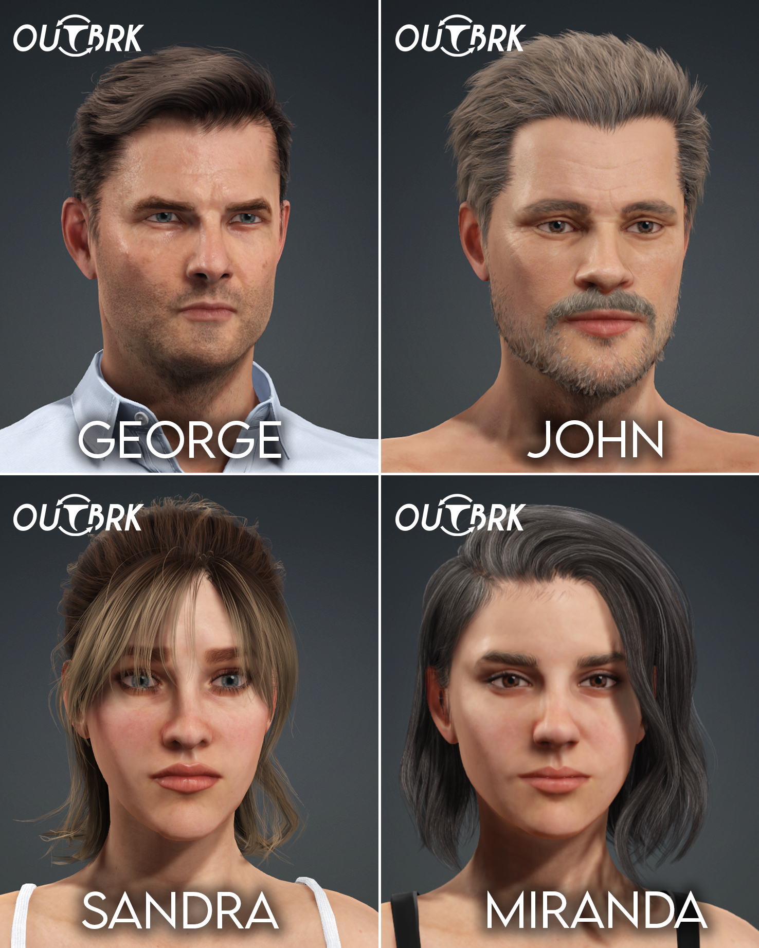 Our character modelers continued to deliver some amazing content and we continued the work to bring this content to life in OUTBRK. We now have our final playable character roster for Early Access. They also have customisation options such as hairs and clothes.