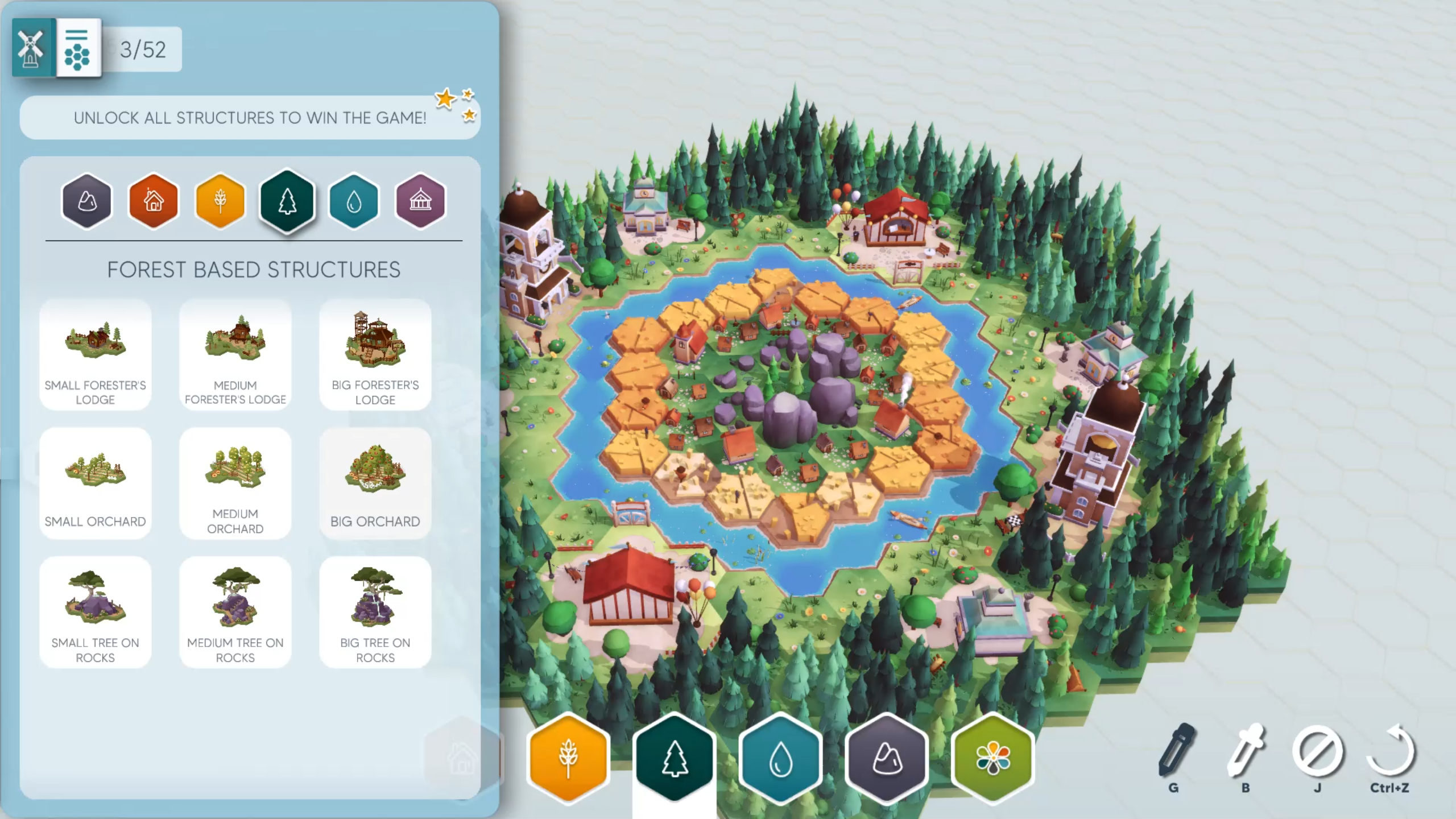 - sculpt unique biomes by placing tiles of the same type next to each other