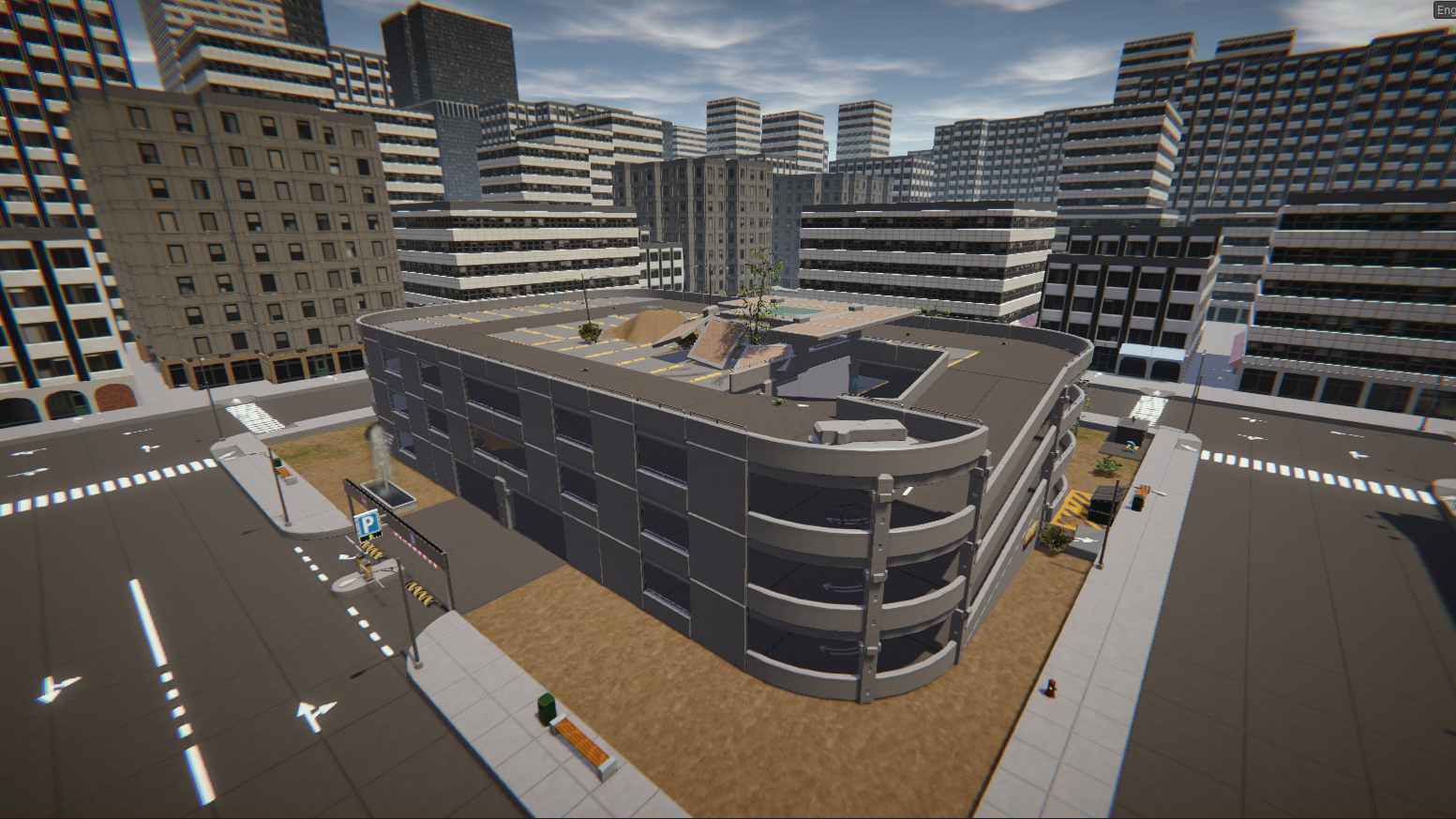 -Debris was moved inside the parking garage.