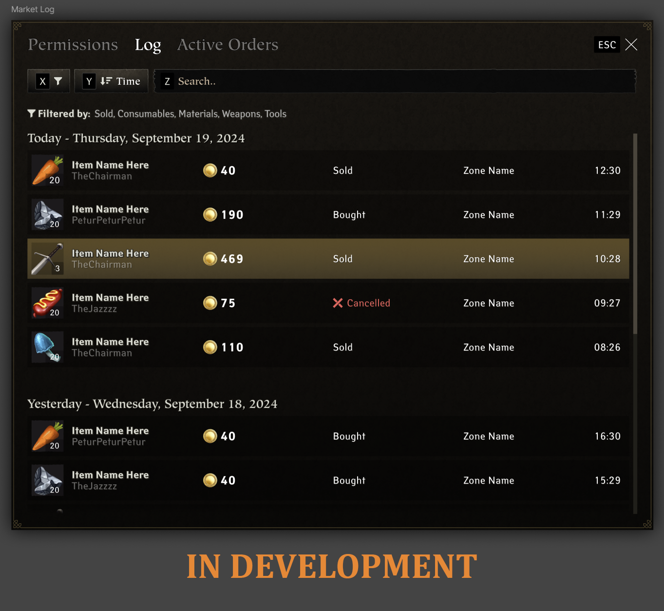 Not in this version of the Markets. We have later plans for market logs that give you essential information on your active orders and all your order activity. We’ve also discussed making it so that players who have connected their Discord accounts could ask the game to notify them using a DM when they make a sale.
