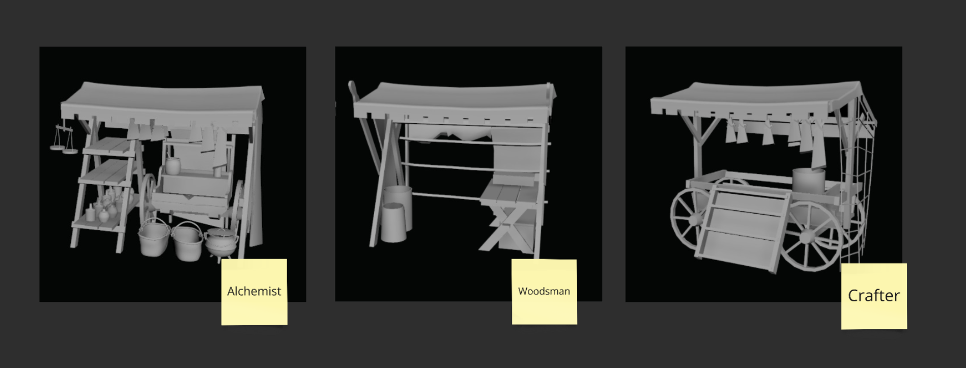 Yes, we have visual variants coming in a later update - no ETA yet. You can see below some Work in Progress designs. Here is what you’ll be able to sell/buy on the specific stalls:- Alchemist: herbs, mushrooms, minerals, drinks and potions.