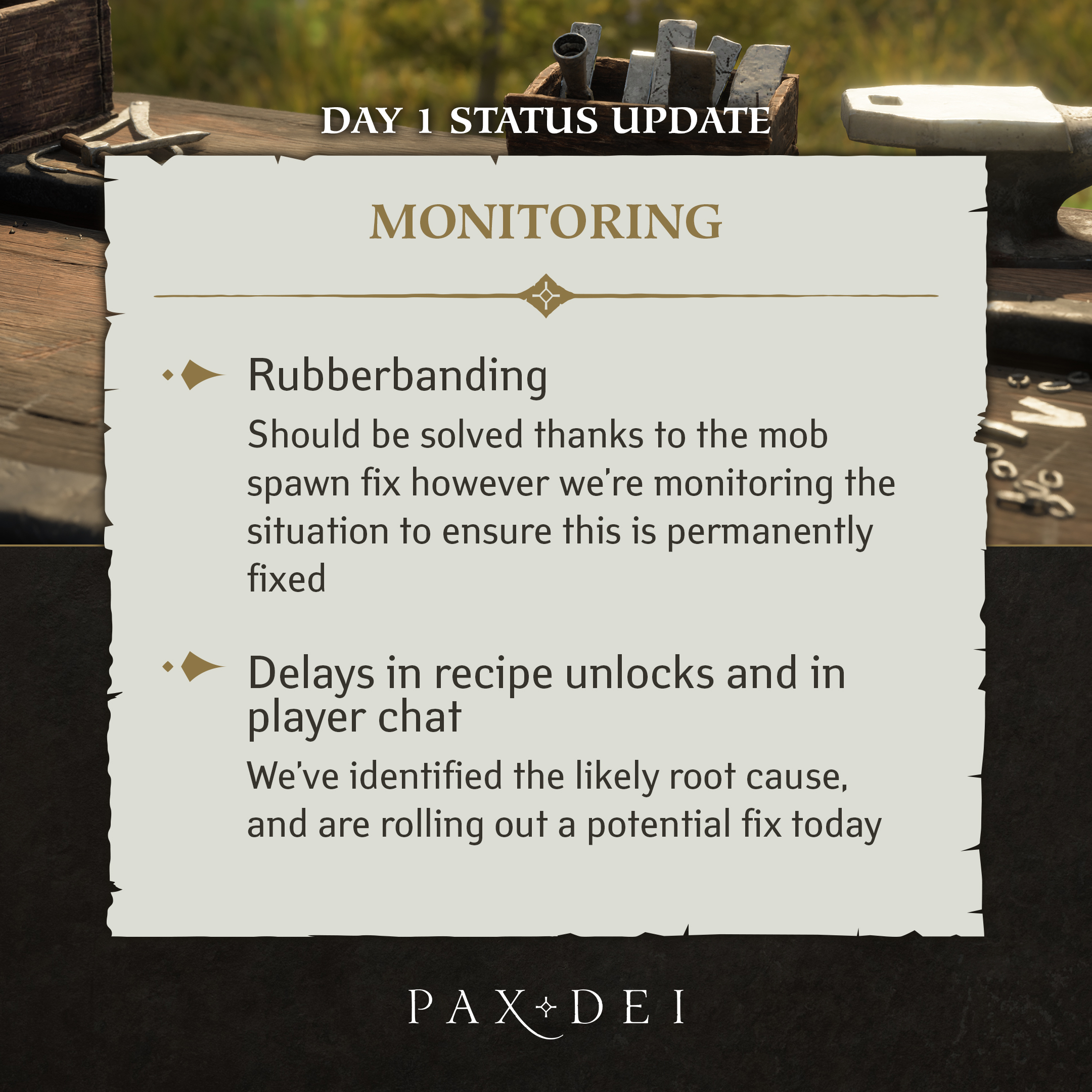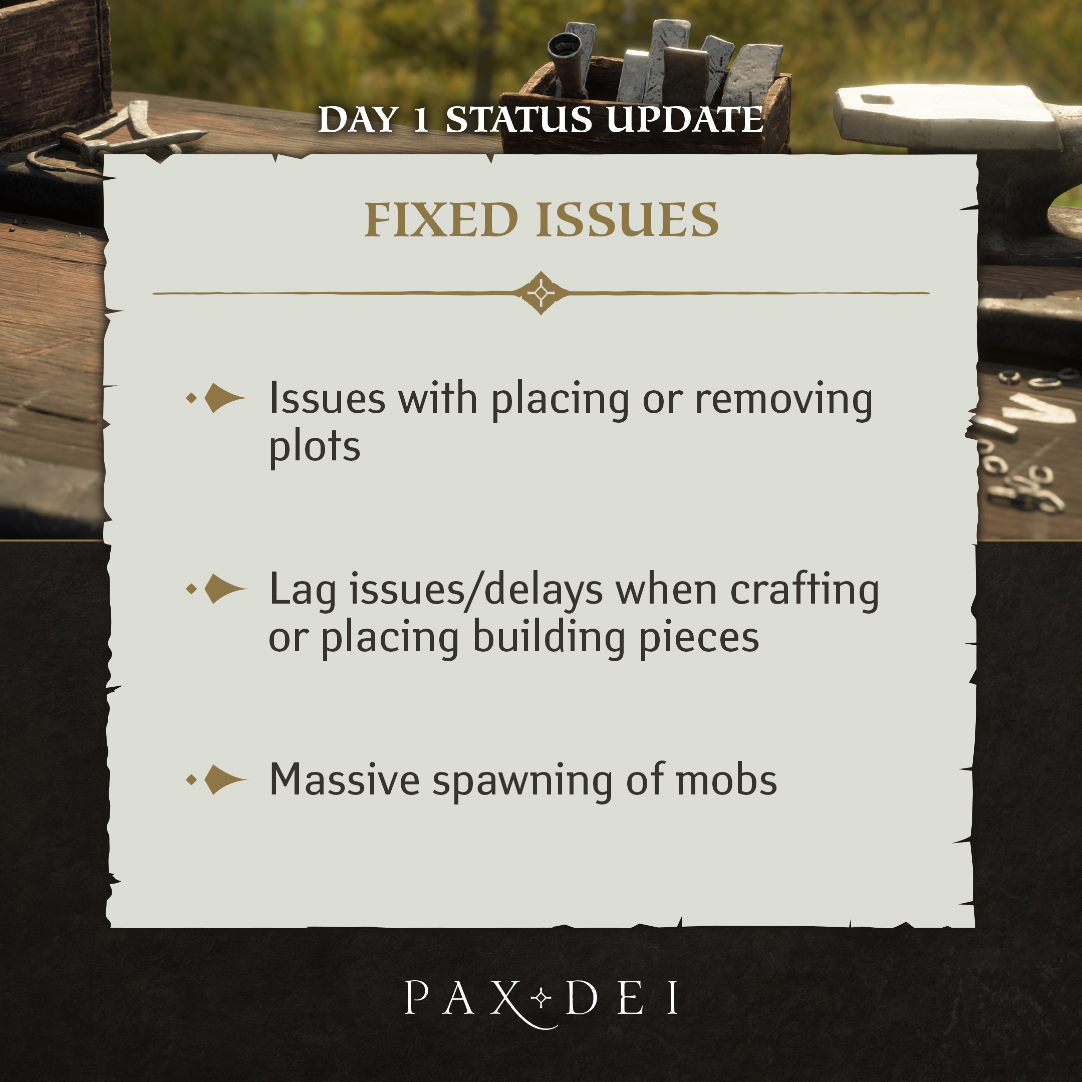 Our first day of Early Access has been a bit hectic, but our teams were—and still are—hard at work identifying issues, investigating them, testing them, and fixing them. Here’s a recap of the issues on Day 1 of our Early Access and their status: