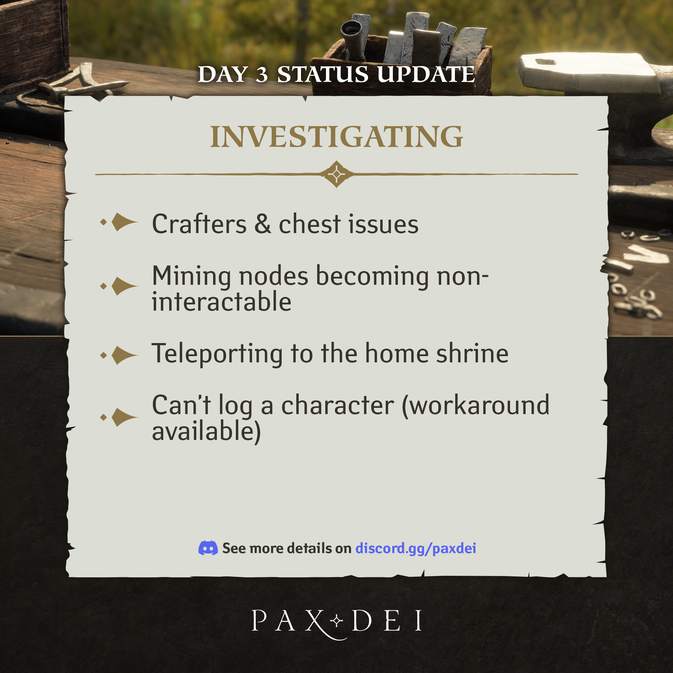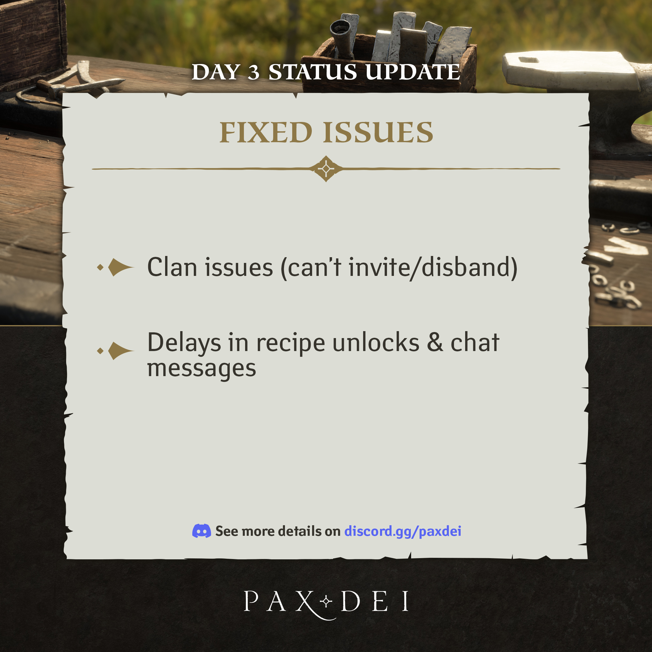 Here’s a recap of the issues on Day 3 of our Early Access and their status: