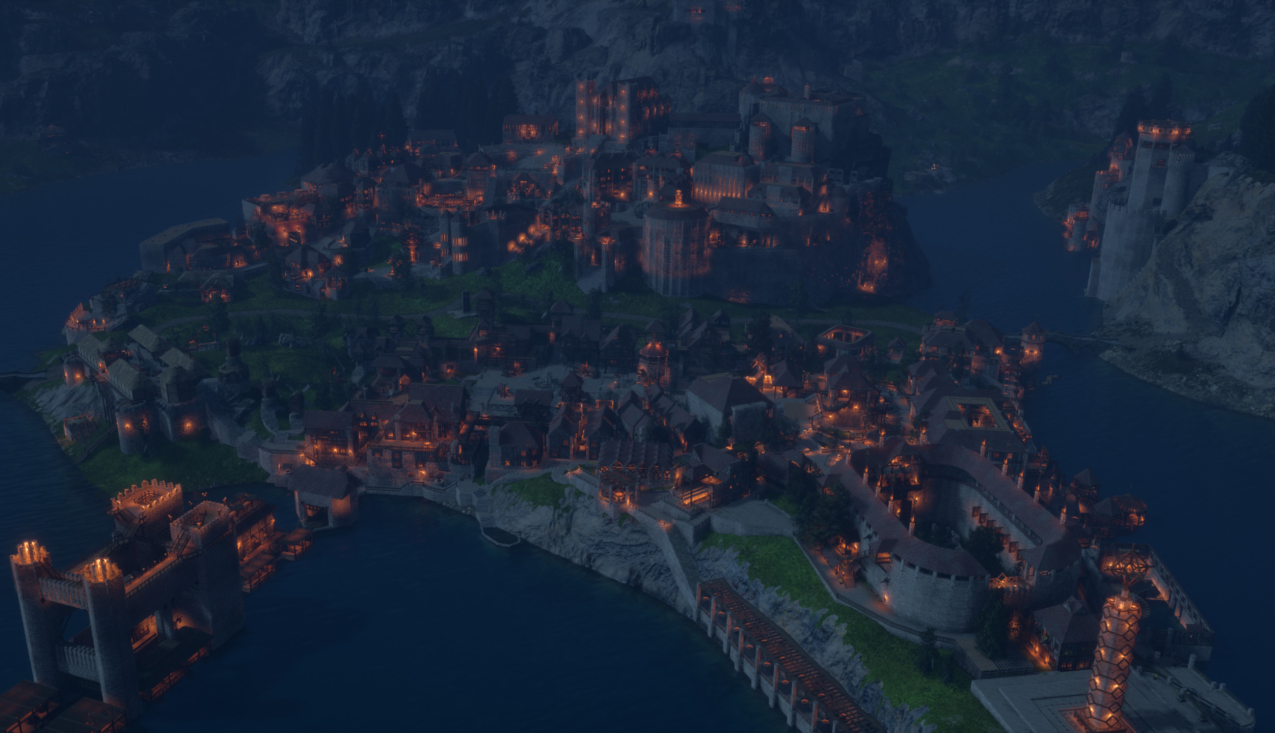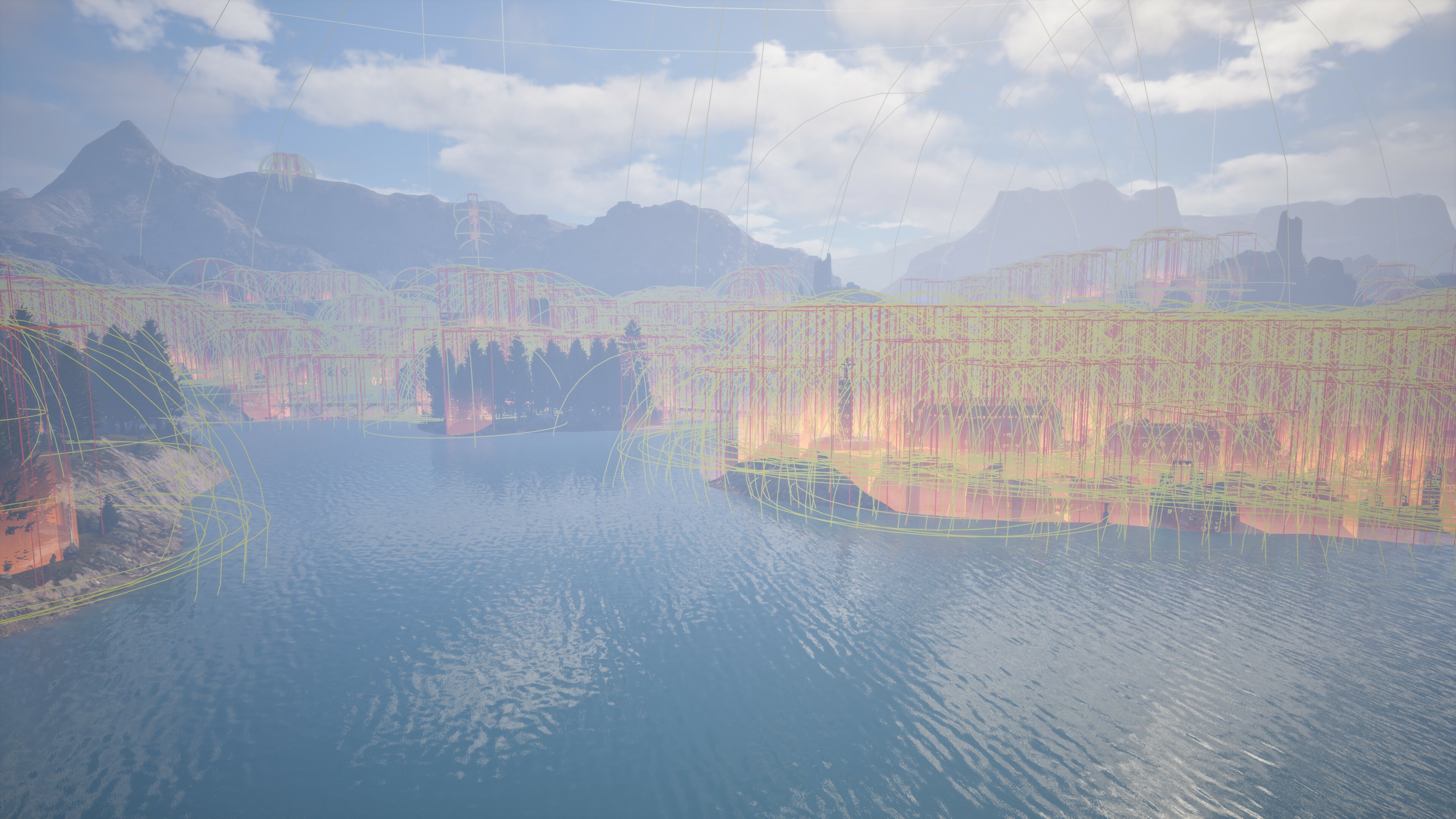 Massive data replication is one of many challenges. After the client has all 400,000 pieces of the home valley, the 30MB package we discussed earlier, we need to make them visible. Your computer must draw them, and here comes the second big challenge. It would be impossible to use a system that draws 400,000 pieces one after the other. We need something tailored to suit our needs. The two key elements we use are instanced static meshes (ISM) and area managers. ISM are used to draw several, even thousands, of pieces in one draw call, instead of drawing them one by one. Area managers, the parallelepipeds boxes in the video below, control all props and building pieces in their areas. They handle the creation and destruction of building pieces and props, integrity calculations, and other things, including the ISM. The area managers look at all the standard building pieces in its area - not the crafters nor the containers - and sorts them spatially. Then, they insert them in custom instanced static meshes. And now the magic can happen. That being said, we are not done yet. In addition to buildings, we have containers, crafters, and decoration pieces that need to be drawn, and most of them have their own gameplay functionality. All these props are standard Unreal actors, but contrary to the buildings you can see from pretty far away, they spawn only around the character inside the streaming distance. In the video below, you can see how the area managers are working and how the props become visible or not. Each box you can see is an area manager. As explained above, each area manager controls its own area for ISM and integrity, but they also control the visibility of the prop actors - crafters, containers, and other decoration pieces. Depending on the position of a character and the streaming distance of its client, the manager will activate or deactivate the visibility of all its prop actors. In the video, red shows the area managers that deactivate the props’ visibility and cyan the active ones. Purple shows the ones pending ongoing activation, and magenta the ones pending ongoing deactivation. [previewyoutube=ZQG9MZJavwo;full][/previewyoutube] There is another type of prop that needs special treatment: lighting sources. When your character is close to them, the lights are running through the Unreal Lumen lighting - the dynamic global illumination system from Unreal Engine 5 - to improve immersion. However, the lights are switched to lightweight light cards at a certain distance to improve performance. Some valleys have more than 20,000 lights that you can observe simultaneously! Of course, we also have some constraints on the server side. One single Unreal Engine server can handle only a maximum of 150-200 players, and if more players want to be in the same village, then we need to create some server instances. That’s another area where having some custom systems helps a lot. Our replication system allows the buildings to be visible across all the server instances and in real time! If one player builds in one server instance, then all the players in the other server instances see the building changing at the same time.