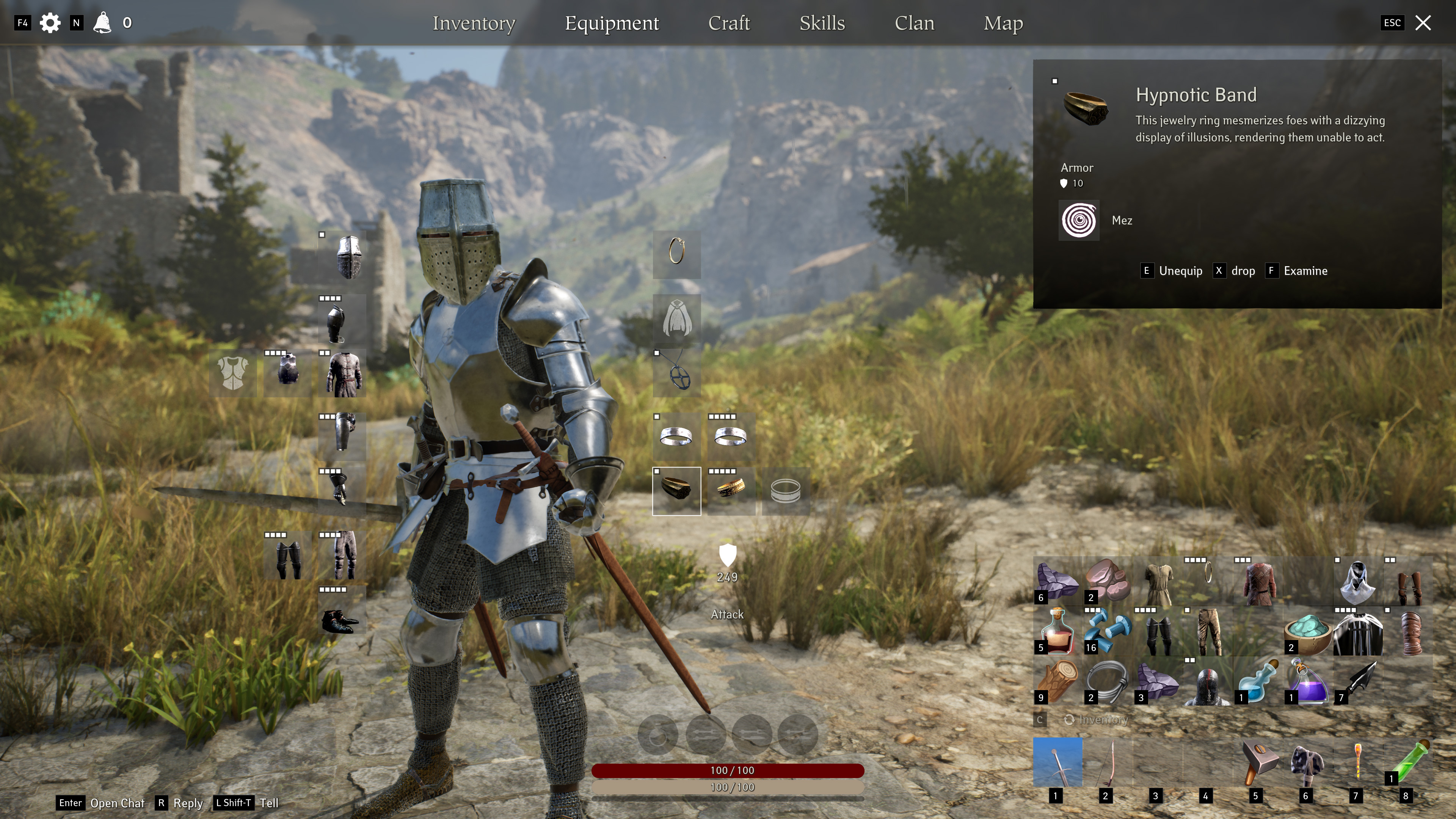 Pax Dei is a sandbox because we believe in offering our players maximum freedom in all possible game aspects. It was, therefore, a very conscious decision to get rid of character classes. In Pax Dei, there is no class to pick. Instead, your character's role derives from the gear you choose to wear at any given time. And with players crafting all items in the game, your individual character progression choices are also very much tied to the establishments and crafting facilities you’ve built with your clan and the overall game economy. Advanced crafting options will allow you to enhance individual items with unique abilities, like spells, weapons techniques, buff and debuff, passive or active. These will offer various combinations to test and optimize based on taste, play style, and the challenges you aim to overcome. For example, a tank build could involve combining a full plate armor, including the Thunderous Visage, able to trigger an enemy or increase its aggro, along with the Soothing Choker, a medallion that can cast a Lull spell - always useful to avoid aggroing a full room in one pull. You can also opt for more hybrid combos: the tank pictured above could swap its plate legs for leather pants with a Heal Spell and equip the Hypnotic Band, a ring with a Mesmerizing spell. Alternatively, a Healer would benefit from the Soothing Choker mentioned above to reduce their aggro when they’re on a healing spree. The choice is yours.