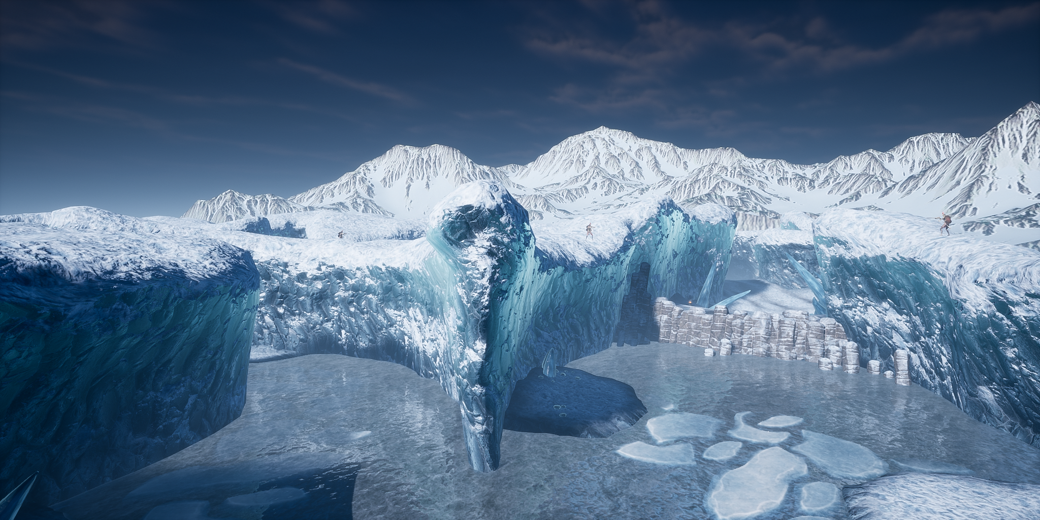 Navigate treacherous glacial valleys and freezing meltwaters to retrieve a shield fragment under the glare of a thawing revenant.