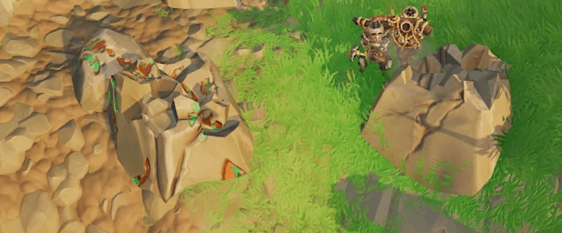 - Their base is called “Grimy Bulwark” and serves them as a smithy to craft their tools / weapons / armor as well as a place to store their mining resources.
