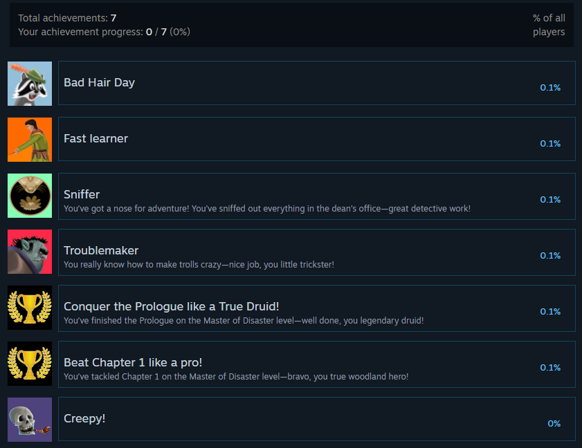 Both the prologue and Chapter 1 now have Steam achievements. Go get them!