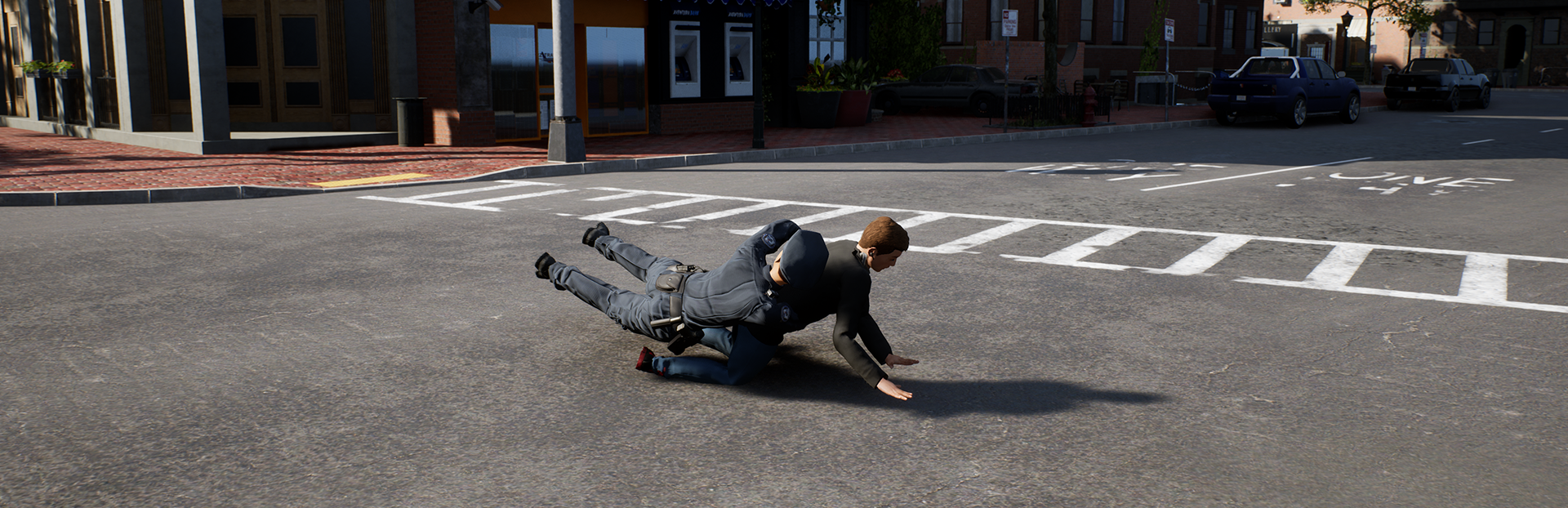[b]How to take action?[/b] To tackle a fleeing suspect, you will be prompted with a button while running and when in close proximity to the suspect. Use this button prompt to forcefully bring the target to the ground and restrain them with handcuffs before they have a chance to escape! It is crucial for the safety of both involved parties and their environment to select an area with sufficient room and only approach the individual from either behind or from the side.