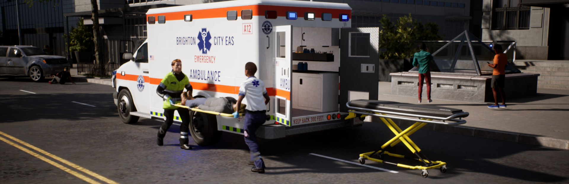 [b]This patient should be carried on a stretcher:[/b] Mark the injured for dismissal once they have been properly treated, their condition has been stabilized and you have completed any feasible accident interviews with slightly injured patients! The medical team, which now consists of 2 medics, can carry patients on a stretcher and will come to your assistance as soon as the patients have been marked. Up to 3 injured people can be transported to the hospital by the ambulance at once!