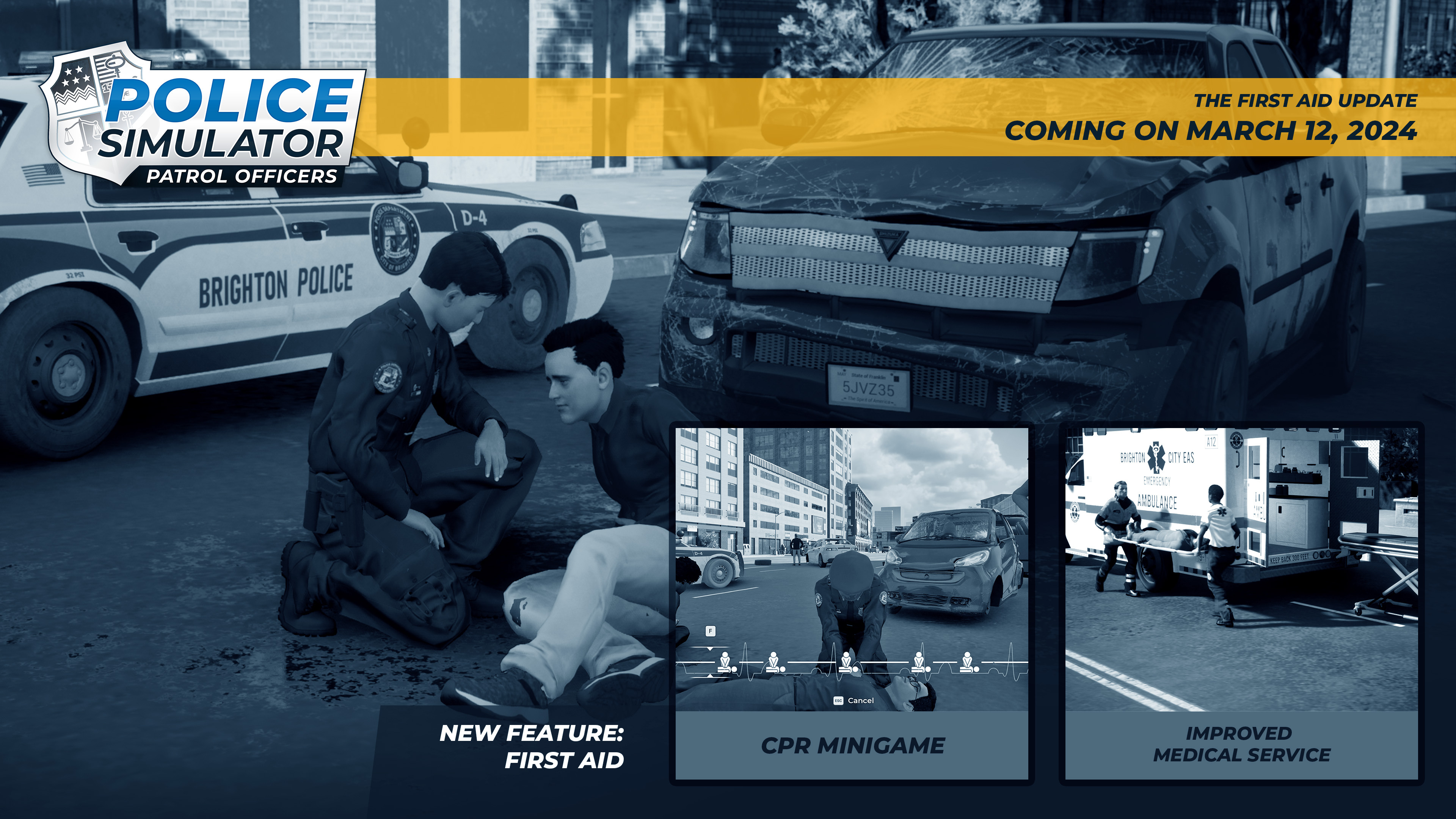 Rush to the accident scene and help injured people: [b]The First Aid Update is coming on March 12 to all platforms! [/b]