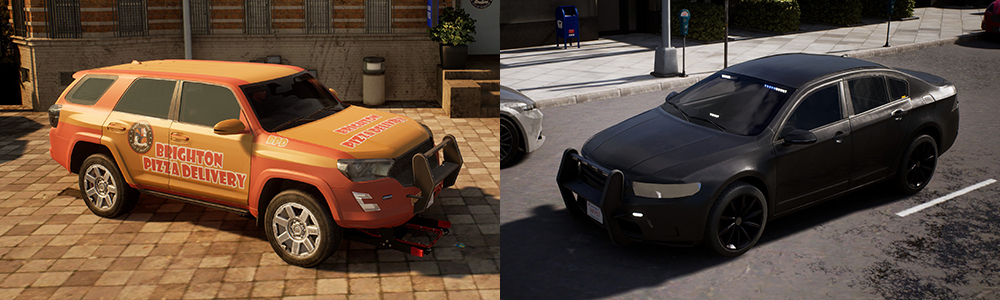 As part of the Unmarked Vehicle Pack, you receive 4 different skins for your patrol cars to patrol the city of Brighton completely in disguise! These go from a fun pizza delivery skin to a completely black livery kind of skin, so there is definitely a favorite for everyone!